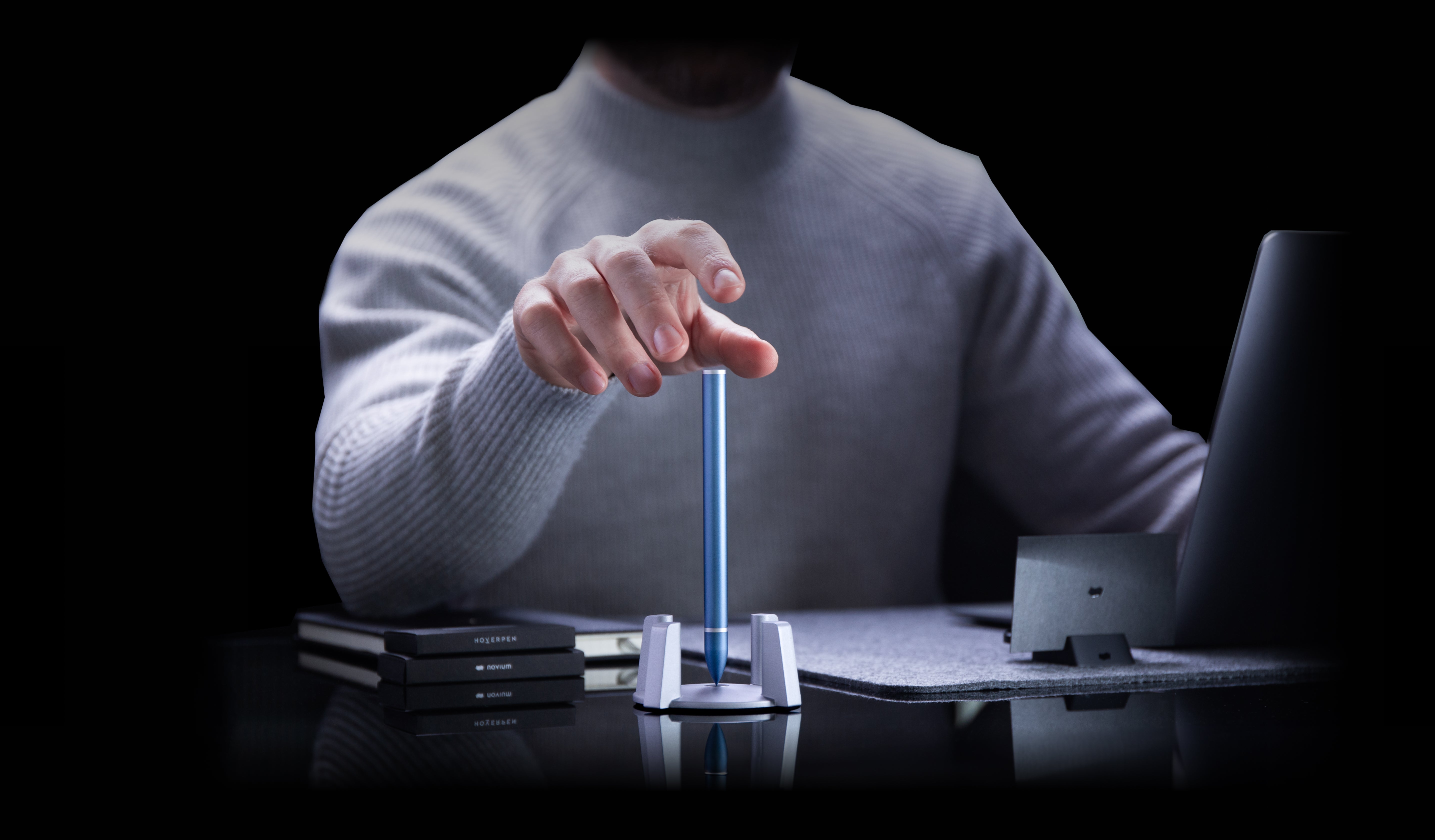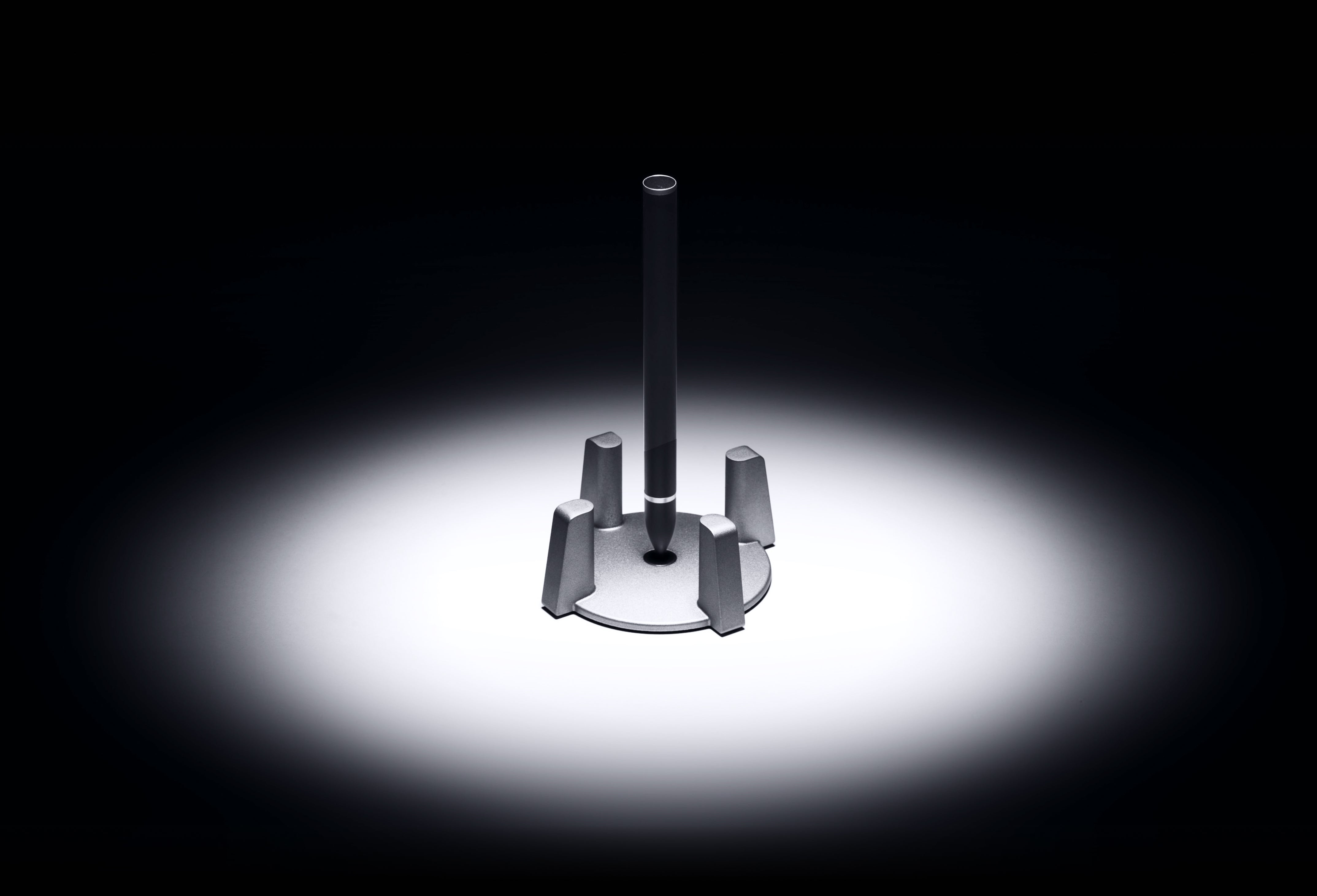 世界初、重力に逆らって垂直に自立するペン。緻密に設計された台座とペンが磁場を作り出し、完璧なバランスを保つ。